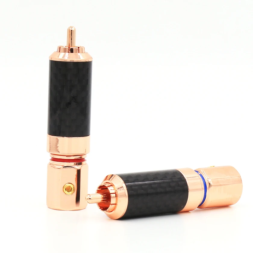 Free shipping 8pcs Carbon Fiber Rose Plated RCA Jack Plug Solder Audio Cable Plug ConnectorSpecification: 100% Brand new, top qualityEutectic copper conductorRhodium plate for best signal transferfor high grade audioAccommodate cable with wire size up to 10mm diameterConnction :NO SoderlingDesign in USA Made in taiwanPackage Contain :8pcs RCAReturn Policy